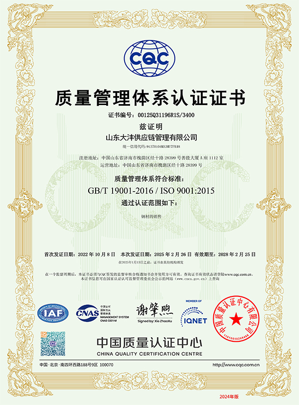 質(zhì)量管理體系認(rèn)證證書(中文)
